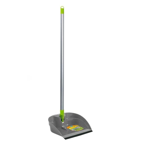 Pá com cabo articulável. Pode ser dobrado para guardar. Possui limpador de cerdas. Maior capacidade de armazenamento de sujeira.Tamanho: 90cm x 27cm x 26cm.