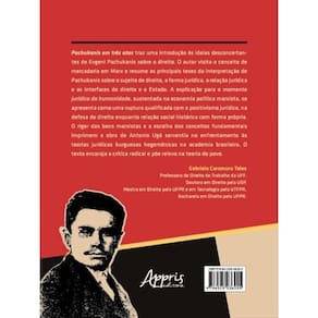 Pachukanis em três atos traz uma introdução às ideias desconcertantes de Evgeni Pachukanis sobre o direito. O autor visita o conceito de mercadoria em Marx e resume as principais teses da interpretação de Pachukanis sobre o sujeito de direito, a forma jurídica, a relação jurídica e as interfaces do direito e o Estado. A explicação para o momento jurídico da humanidade, sustentada na economia política marxista, se apresenta como uma ruptura qualificada com o positivismo jurídico, na defesa do direito enquanto relação social histórica com forma própria. O rigor dos bons marxistas e a escolha dos conceitos fundamentais imprimem a obra de Antonio Ugá serventia no enfrentamento às teorias jurídicas burguesas hegemônicas na academia brasileira. O texto encoraja a crítica radical e põe relevo na teoria do povo. Gabriela Caramuru Teles Professora de Direito do Trabalho da UFF. Doutora em Direito pela USP. Mestra em Direito pela UFPR e em Tecnologia pela UTFPR. Bacharela em Direito pela UFPR.