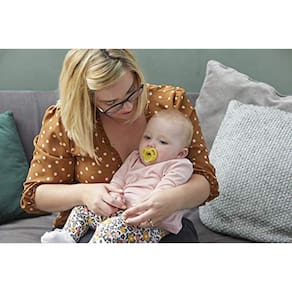 A ação instintiva de chupar ajuda a acalmar e acalmar os bebês e todos os pais sabem que não há nada mais maravilhoso do que um bebê calmo e contente. Bocas pequenas nem sempre se agarram a chupetas pesadas, o que significa que os pais muitas vezes precisam substituir a chupeta na boca do bebê a cada poucos minutos. Nossa chupeta de silicone ultra-leve é a nossa chupeta de silicone mais leve de sempre e é leve o suficiente para ficar na boca do bebê por mais tempo ajudando os bebês a ficarem mais calmos, acalmados e mais felizes por mais tempo. Como a baglet de silicone simétrico é totalmente reversível, não há lado 'errado' para que a chupeta sempre seja colocada corretamente na boca do seu bebê, mesmo quando eles mesmos colocam na boca. O escudo curvo fica confortavelmente entre o queixo e o nariz do bebê e os orifícios em cada lado permitem um fluxo de ar extra e evitam o acúmulo de umidade que ajuda a proteger a pele delicada do bebê contra irritação. A superfície lisa do silicone é muito fácil de limpar e não absorve manchas e odores. As propriedades higiênicas e antiess impedem a acomodagem da poeira e, como tem um design de uma peça só, é realmente fácil de limpar - basta estourar em um esterilizador, lavar à mão ou na prateleira superior da máquina de lavar louça. Recomendamos que você substitua a chupeta todos os meses e sempre nos primeiros sinais de dano ou fraqueza e recomendamos parar o uso da chupeta quando seu filho tiver mais de 36 meses. De um estudo independente em julho de 2021 de 416 mães com uma criança de 0 a 36m, que atualmente estão usando uma chupeta Tommee Tippee: · 99% das mães recomendariam uma chupeta Tommee Tippee · 97% das mães dizem que uma chupeta Tommee Tippee ajudou a acalmar o bebê · 93% das mães dizem que os bebês amam sua chupeta Tommee Tippee · *97,5% dos bebês aceitam uma chupeta Tommee Tippee.