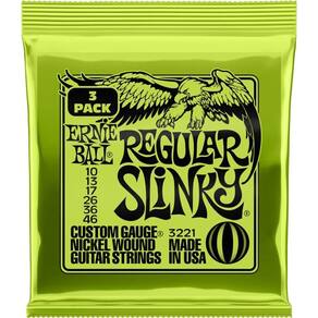 As cordas Ernie Ball Slinky Electric Strings são usadas por Jimmy Page, Jeff Beck e Angus Young. Estas cordas são produzidas com alta precisão para atingir os mais altos patamares e exatas especificações para garantir uma excelente performance e longa durabilidade. As cordas mais vendidas nos EUA, as cordas Slinky são feitas de puro níquel enroladas por computador em fio de puro aço .010/.046 . As cordas Ernie Ball Regular Slinky são o set mais vendido de cordas, e o encordoamento favorito de muitos músicos ao redor de mundo. As cordas Regular Slinky são tocadas por Eric Clapton, John Mayer, Steve Vai e outras legiões de guitarristas pelo mundo todo. As cordas Regular Slinky são feitas de fio de aço niquelado, encapado por um fio de puro aço moldado. As cordas planas são feitas em latão especialmente temperado chapado em aço carbonizado, produzindo um timbre bem balançeado para sua guitarra. Conteudo da embalagem 3sets Encordoamento Ernie Ball 10/046 Ean: 749699132219