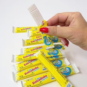 Açúcar: É o principal ingrediente, responsável pelo sabor doce característico. .Arope de glucose: Ajuda a dar textura e consistência à bala. Gordura vegetal hidrogenada: Contribui para a maciez e cremosidade. Amido modificado: Atua como espessante. Sal: Realça os sabores. Acidulante ácido cítrico: Regula a acidez e realça o sabor. Estabilizante citrato de sódio: Ajuda a manter a consistência. Aromatizantes: Conferem o sabor de tutti-frutti. Emulsificante lecitina de soja: Facilita a mistura dos ingredientes. Bala Esticadinha Juquinha Tutti Frutti Bala de maçã Bala esticável Doces Tutti Frutti Bala sabor frutas Bala colorida Bala retrô Bala de frutas naturais Bala de doces clássicos Bala para festas Bala para presentear Bala skate Marca: Não Informado