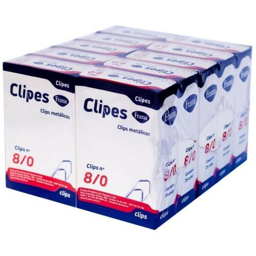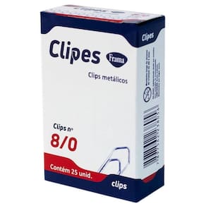 Quantidade: Pacote com 250 unidades (10 caixas com 25 clips em cada). Tamanho: 8/0. Material: Clips galvanizados, oferecendo resistência à oxidação e maior durabilidade. Aplicação: Perfeito para agrupar e organizar papéis, documentos e materiais de escritório. Uso: Indicado para uso doméstico, escolar e empresarial.