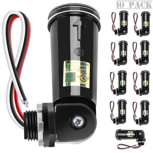 sensor fotocélula - ?Sensor de fotocélula listado na UL? - O sensor de interruptor fotoelétrico de entrada de 100-277V é listado pela UL. IP65 à prova d'água protege o sensor contra elementos climáticos como chuva e poeira - ?Converta luminárias para ligar/desligar automaticamente?- A fotocélula na iluminação externa tem função do crepúsculo ao amanhecer e liga automaticamente ao anoitecer/desligar ao amanhecer. Use-o na luz com potência máxima de 500W, use-o em um circuito com uma corrente máxima de 5A, caso contrário, a fotocélula queimará - ?Instalação simples e fácil de usar? - Coloque a rosca do interruptor no orifício de nocaute e aperte com junta de borracha e porca de trava de liga de zinco. A base giratória pode ser posicionada no ponto preciso, focando a luz onde você precisa que esteja sem esforço - ?Interruptor inteligente de sensor de fotocélula?- O recurso de atraso de 30 ~ 120 s no controle de luz do sensor de movimento externo evita o acionamento acidental da luz devido a um animal perdido, os faróis de um carro que passa ou um raio - ?Especificações e amplas aplicações?- Tensão de entrada AC 100-277, 50/60Hz, diâmetro roscado de 2,7 cm, 10~20Lx ligado e 30~60Lx desligado nível de operação. Ótimo para controlar luzes de área externa, postes, luzes de varanda, luzes de quintal, holofotes, luzes de entrada, iluminação de garagem e passarela