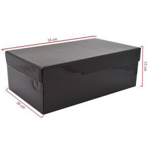 Cada caixa possui dimensões de: 34cm de comprimento 20cm de largura 12cm de altura garantindo um encaixe perfeito para a maioria dos calçados.