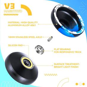 O YOYO V3 de dupla função é um dos ioiôs de metal básicos recomendados pela Magicyoyo. Ioiô V3 projetado para jogadores iniciantes de ioiô aprendendo truques básicos de cordas, e vem com rolamento de ioiô de substituição sem resposta para músicos avançados de ioiô. O ioiô também cultiva a imaginação, criatividade e capacidade de resposta das crianças, permite que as crianças se livrem do hábito de se entregar a produtos eletrônicos. Dupla finalidade: 1. Yoyo responsivo: ioiô responsivo adotando rolamento plano. Perfeito para alunos iniciantes. Sistema de resposta de silicone para brincadeiras superiores. 2. Yoyo sem resposta: adote o rolamento KK, você pode substituir o rolamento de rolamento responsivo (tamanho estreito C de rolamento) para um ioiô avançado e sem resposta, basta usar nossa ferramenta de rolamento de remoção fornecida! Longo tempo de sono e rotação – como ioiô sem resposta: Dorme muito bem e gira por muito tempo, muito estável e durável. Especificações: Modelo: MAGICYOYO V3 Material: Alumínio 6061 Peso: 64,9 g Diâmetro: 55 mm. Largura: 38,5 mm Largura do espaço: 2,75 mm Estilo: String Trick (1A, 3A, 5A) Rolamento: rolamento plano autêntico (rolamento C KK tamanho extra fornecido) Eixo: autêntico M4*10 mm (eixo extra fornecido M4*12 mm) Superfície: Acabamento de jateamento de areia Cordão: 100% poliéster premium; comprimento: 110 cm Idade: a partir de 8 anos Dicas de jogo: 1. A corda de ioiô deve ser trocada periodicamente quando a corda se tornar defeituosa, ela ajudará você a tocar melhor. 2. Você pode personalizar a capacidade de resposta adicionando uma gota ou mais de lubrificante espesso ao rolamento plano para obter o nível de resposta perfeito. V3 YOYO O pacote com 2 unidades inclui: 1 MAGICYOYO V3 (preto) 1 MAGICYOYO V3 (preto e azul) 12 cordas de ioiô (). 1 bolsa Yo-Yo. 2 rolamentos tamanho C KK. 2 eixos (M4 x 12 mm). 1 ferramenta de rolamento de remoção. 1 mini chave Allen. Cuidado: não jogue perto de pessoas, animais de estimação ou quebráveis. - Pacote de ioiô responsivo com 2 - MAGICYOYO V3 yoyo, feito de liga de alumínio 6061, acabamento de jateamento de areia, rolamento plano autêntico. O ioiô responsivo V3 é um ioiô infantil perfeito para 1A, 3A, 5A - de ioiô de dupla finalidade – O pacote de ioiô V3 responsivo traz rolamento plano padrão e vem com rolamento KK sem resposta de presente extra, de um ioiô iniciante para ser um ioiô sem resposta para adultos - Brinquedo de ioiô de superfície premium – Yoyo V3 de liga metálica feita de liga de qualidade 6061, rotinas de alta velocidade muito estáveis e equilibradas. Superfície de acabamento de jateamento de areia super suave que nunca desbota e não arranha facilmente - Melhor ioiô para crianças iniciantes – Pacote de presente elegante para estes ioiôs de liga, que é um presente perfeito para seus filhos, familiares e amigos. Recomendado para crianças praticando ou competições diárias, ótimo para presente de festa de aniversário e Natal - Lista de pacotes – Pacote de 2 Yoyo V3 (incluído preto e azul preto), 12 cordas de ioiô, 1 bolsa de estojo, 2 rolamentos KK, 2 eixos (M4 x 12 mm), 1 ferramenta de remoção de rolamento, 1 x chave Mini Allen