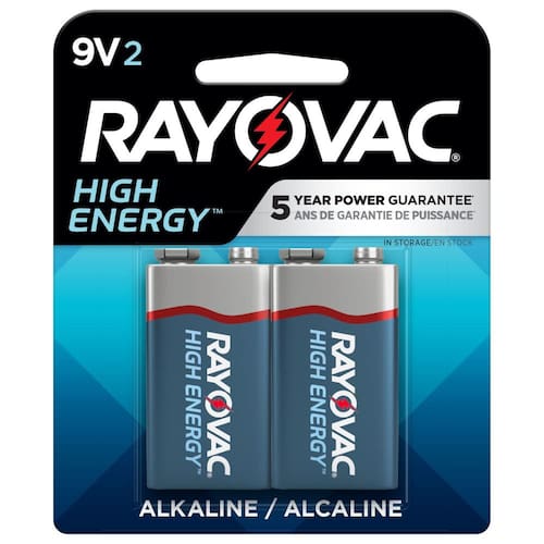 - Pacote com 2 baterias alcalinas de alta energia Rayovac de 9 volts, baterias de 9 volts