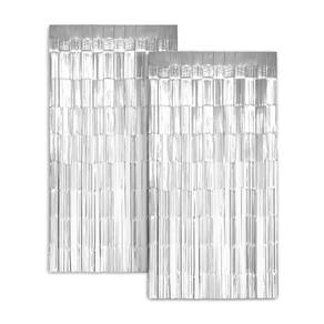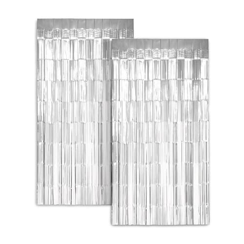 Pacote com 2 cortinas de alumínio prateado Zink de 3,28 pés x 6,56 pés — Flâmulas de ouropel para cabines fotográficas, festas de aniversário, casamentos, formaturas e decorações natalinas — DESLUMBRE SEUS CONVIDADOS — Pendure o cenário brilhante na parede ou porta e combine com luzes LED, banners e outros adereços para obter a melhor configuração. - DUPLIQUE A DIVERSÃO — O conjunto inclui dois cenários de flâmula de alumínio de 3,28" x 6,56 pés, perfeitos para sua próxima festa. - CONFIGURAÇÃO SIMPLIFICADA - Dê brilho ao seu evento em pouco tempo - basta retirar a parte de trás da fita adesiva dupla face e fechar as cortinas. - QUALIDADE PREMIUM — Feito de enfeites duráveis, o pano de fundo metálico é feito para durar e ser reaproveitado repetidamente. - MELHORE QUALQUER EVENTO — Perfeito para festas temáticas, aniversários, chás de bebê, despedidas de solteira, comemorações de fim de ano, aniversários e muito mais!