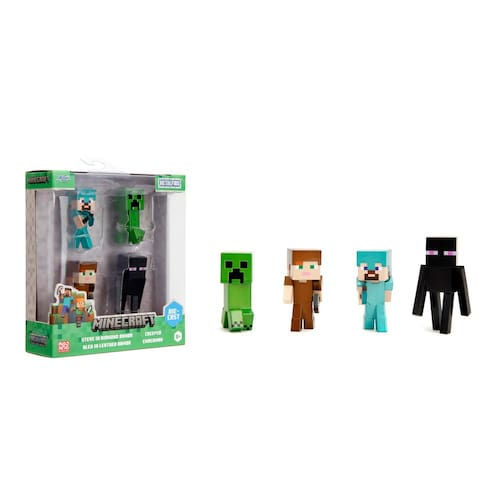 Jada Minecraft 6,3 cm MetalFigs Pacote com 4 - Inclui Steve em armadura de diamante, Alex em armadura de couro, Enderman e Creeper