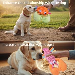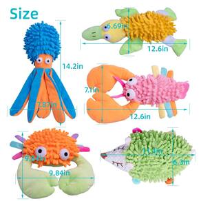 Pacote com 5 brinquedos para cães grandes e médios - Pacote com 5 brinquedos interessantes para cães: coleção de 5 adoráveis animais de pelúcia projetados para entreter e envolver seu amigo peludo. Estes brinquedos vêm na forma de caranguejos, lagostas, porcos-espinhos, polvos e pato, cada um feito para despertar a curiosidade do seu animal de estimação e proporcionar diversão sem fim. - Durabilidade: nossos testes garantem que eles possam lidar com a brincadeira diária e mastigação do seu animal de estimação, tornando-os uma adição confiável e duradoura à caixa de brinquedos do seu animal de estimação. - Capacidade de dentição: reconhecendo a importância da dentição dentária em animais de estimação, nossos brinquedos de pelúcia apresentam um design texturizado que imita a sensação de uma escova. Isso não apenas oferece uma experiência de mastigação agradável, mas também ajuda a manter a dentição do seu animal de estimação em bom uso. - Brincadeira interativa: enquanto seu animal de estimação gosta desses brinquedos, é sempre uma boa ideia supervisionar e brincar interativamente. Isso ajuda a evitar possíveis acidentes e garante que seu animal de estimação permaneça bom e feliz enquanto brinca.