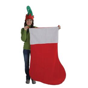 WOW! What a huge stocking ! With this Jumbo Stocking you will need lots of goodies for in their stockings this year. This (2) two feet wide opening is large enough to carry your Christmas gifts from house to house. When you receive this Jumbo Stocking you will receive at least (4) four feet tall stocking, which is made of soft red material with white trim. The white trim is a soft white material that you can personalize with fabric paint or glitter. Each Jumbo Stocking has a double loop for hanging. The loops are made of soft red material and the Jumbo Stocking is easy to hang.