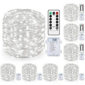 Mlambert Pacote com 8 luzes de fadas de 10 m operadas por bateria com controle remoto e temporizador, luz cintilante regulável à prova d'água, 8 modos para decoração interna e externa, branco frio - Pacote com 8 luzes LED de 40 pés: nossas luzes de fada vêm com LEDs brancos frios em fios prateados por corda, são operadas por bateria e incluem uma função de controle remoto e temporizador. Com um comprimento total de 97,5 m, você terá um amplo suprimento de luzes para transformar seu ambiente interno e externo em um ambiente encantador à noite - Luzes decorativas à prova d'água: nossas cordas de luzes são à prova d'água IP65, adequadas para uso externo, mas evite submergir a caixa de bateria na água. Perfeita para reuniões de Natal ou verão, estas luzes versáteis trarão um toque mágico a qualquer evento - Luzes estreladas brancas frias: nossas luzes de LED brancas frias têm um tempo de funcionamento de mais de 80 horas. Se você achar que o brilho está faltando, pode ser devido à bateria fraca, então certifique-se de substituir as pilhas. Crie uma atmosfera aconchegante e convidativa com nossas luzes cintilantes. Perfeito para Halloween, Natal, Dia dos Namorados, Ano Novo, festas, casamentos, aniversários, feriados e muito mais - Luzes LED reguláveis para ambientes externos: nossas luzes de fada vêm com uma função de intensidade de intensidade e oferecem 8 modos de iluminação exclusivos, permitindo que você ajuste o brilho de acordo com sua preferência. Ideal para criar um ambiente acolhedor e acolhedor no seu quarto, sala de estar, jardim, pátio, quintal, festa, casamento ou qualquer ambiente decorativo - Luzes mágicas de fadas: Pacote incluindo 8 conjuntos de 960 luzes LED de 960 m com caixa de bateria (as baterias não estão incluídas no pacote), 2 controles remotos e 1 instrução. Estas luzes exclusivas adicionarão um toque de elegância à sua festa, pátio, varanda, quintal, jardim ou gazebo, lançando um brilho quente e vibrante que deixará seus convidados se sentindo bem-vindos e encantados