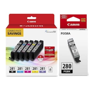 A tinta preta PGI-280 à base de pigmento é usada para imprimir documentos em papel comum e garante texto nítido, enquanto a tinta colorida CLI-281 à base de tinta é usada para imprimir fotos e imagens. Quando combinadas com papel fotográfico Canon genuíno, essas tintas protegem suas fotos de desbotamento e manchas.