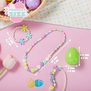 - Ótimo custo-benefício. O pacote de ovos de Páscoa com brinquedos inclui 12 cores quentes ovos de Páscoa com um total de 16 colares e pulseiras. Cada ovo de Páscoa colorido contém um adorável colar e pulseira