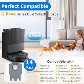 - ?O kit inclui? Inclui 14 sacos de pó descartáveis para robô Q REVO com capacidade de 2,7 L, cada bolsa comporta até 7 semanas de detritos (dependendo de quantas vezes a vassoura varre e da quantidade de poeira em casa), o kit foi projetado para atender às necessidades de substituição de longo prazo de 10 a 12 meses.