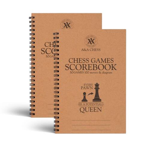 A&A Pacote com 2 scorebook para xadrez, livro de pontuação de xadrez com proteção ocular, 50 jogos graváveis, 100 movimentos por jogo, livro de pontuação de recordes de xadrez