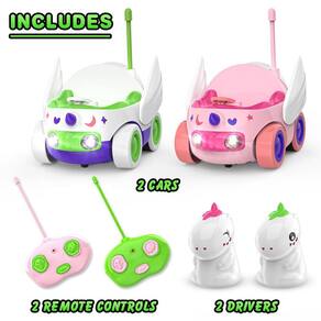 Pacote com 2 carros de controle remoto Unicórnio para crianças pequenas, presentes de unicórnios para meninas e meninos, brinquedos de carro para crianças com luzes LED e música, presentes de aniversário de Natal para bebês de 2, 3, 4 a 5 anos