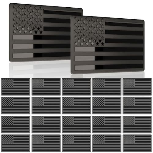 Pacote com 20 adesivos de metal 3D em relevo com emblema da bandeira americana, preto fosco 12,7 cm x 7,6 cm patriótico bandeira dos EUA adesivos de para-choque para caminhão, janela, motocicleta, - O pacote inclui: Cada pedido inclui 20 adesivos de bandeira na orientação regular dos EUA, cada bandeira tem 12,7 cm x 7,6 cm - Bandeira 3D em relevo: Feito de material de liga de alumínio de alta qualidade, fundo pintado em preto fosco. Estrelas em relevo projetadas em 3D, listras e base preta fosca fazem com que ele se destaque e sinta o artesanato - Adesivo forte: Fita dupla face da marca superior na parte de trás do emblema para melhor aderência e durabilidade. Certifique-se de que a superfície alvo esteja limpa e seca com um pano ou lenço antes de aplicar - FEITO PARA DURAR: À prova de intempéries, à prova de sol, resistente ao desbotamento UV, foi projetado para colar por um longo tempo. - Ampla aplicação: utilizado em carros, carrinhos de golfe, SUV, tanques, motocicletas, laptops, geladeiras, mostre seu amor patriótico aos nossos grandes EUA e a afirmação de que você não se renderá