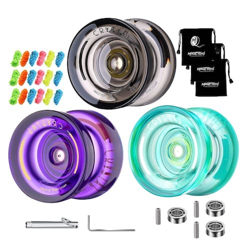 Pacote com 3 cristais Yoyo K2, ioiôs responsivos para crianças iniciantes, ioiôs de dupla função com rolamentos de ioiô de substituição sem resposta para jogadores avançados, remoção de rolamento, 18 cordas de ioiô + 3 sacos - YOYO DE DUPLA FUNÇÃO PARA CRIANÇAS: O cristal MAGICYOYO K2 é ioiô de dupla função. Quando você receber o pacote de ioiô, o ioiô K2 é responsivo equipado com rolamento plano. Ioiô ideal para crianças ou iniciantes fazerem truques básicos de ioiô. Quando você puxar a corda do ioiô suavemente, o ioiô retornará à sua mão facilmente - Do início ao avançado: o Yoyo K2 profissional se tornará um ioiô sem resposta depois que você mudar o rolamento plano do ioiô para um rolamento KK. Os rolamentos côncavos não responderam e a bola não foi devolvida automaticamente após o lançamento. Você precisa aprender as habilidades de "Bind" para poder devolver a bola. Adequado para jogadores intermediários e seniores e profissionais - Profissional de ioiô de plástico premium: o cristal MAGICYOYO K2 é feito de material plástico PC com a bela cor de cristal. Durável e resistente, não é fácil de ser danificado. A forma de abertura alargada adiciona estabilidade às bordas externas do ioiô. Quando você receber o cristal yoyo K2, ele fica mais bonito do que as imagens, você se sentirá surpreso - Ótimo presente para seus filhos: o pacote de presente suave e casual para bolas escorregadias é o presente ideal de Natal e Ação de Graças para crianças, familiares e amigos. O treinamento de bolas de ioiô não automáticas pode exercitar a capacidade de coordenação física das pessoas, cultivar a perseverança e a paciência das crianças. Uma ótima maneira de manter as crianças longe de jogos eletrônicos - Pacote de ioiô de valor: Inclui 3 x Yoyos K2 verde cristal, 1 x Yoyo K2 cristal preto, 1 x Yoyo K2 cristal roxo, substituição 18 x cordas Yoyo (), 3 x bolsas ioiô, 1 x ferramenta profissional de remoção de rolamento, 3 x rolamentos KK (rolamento yoyo sem resposta), 3 x eixos M4 x 10 mm (use para yoyy que não responde o). Dê a você e seus filhos a chance de desfrutar do charme dos ioiôs