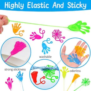 50 peças de brinquedos pegajosos para crianças trazem enorme alegria e diversão. Veja seus filhos se divertirem com Mini Sticky Hands, Spider Web, Foot, Ghost Hand para crianças. Serão um ótimo baú de brinquedos para sala de aula e prêmios de lembrancinhas. É um presente perfeito para qualquer ocasião, seja no Halloween, na Páscoa ou simplesmente em uma festa em família.