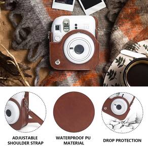 - ? Proteção geral: a capa mini 12 é feita de exterior de PU premium e interior de microfibra macia, com bom desempenho em resistência à água e durabilidade. Proteja eficazmente sua câmera contra arranhões, solavancos e poeira. A capa frontal removível permite capturar os momentos maravilhosos da sua vida sem tirar a câmera.