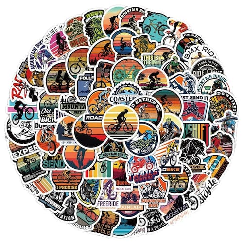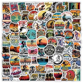 Pacote de adesivos de ciclismo definitivo: este conjunto inclui 100 adesivos de vinil exclusivos de alta qualidade, projetados para entusiastas do mountain bike, com vários temas de ciclismo e aventura ao ar livre. Duráveis e à prova d'água: feitos de material de vinil à prova d'água, esses adesivos são ideais para uso externo, capazes de resistir à exposição à água sem desbotar ou descascar. Perfeito para personalizar equipamentos: dê um toque exclusivo às suas garrafas de água, laptops, skates, malas ou bicicletas de montanha com esses adesivos divertidos e vibrantes com temas de ciclismo. Fácil de aplicar e removível: esses adesivos são fáceis de colar em qualquer superfície lisa e podem ser removidos de forma limpa sem deixar resíduos pegajosos, o que os torna perfeitos para decorar seu equipamento. Ótimos para fãs de ciclismo: se você é ciclista de montanha, ciclista de estrada ou simplesmente adora o esporte, esses decalques são uma maneira fantástica de mostrar sua paixão pelo ciclismo.
