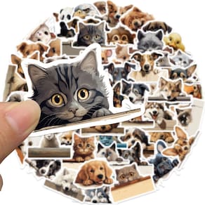 Material: papel e vinil Peso: 30-60 g Tamanho: 3-6 cm Quantidade: 50 unidades 50 designs exclusivos de cabeça de animal Inclui 50 adesivos não repetitivos com adoráveis rostos de animais, como cães, gatos, coelhos, pandas, patos e muito mais, perfeitos para crianças, adolescentes e adultos. Vinil impermeável durável Feitos de vinil de alta qualidade, esses decalques são à prova d'água, resistentes a arranhões e à prova de sol, garantindo cores vivas e uso duradouro. Uso multiuso Ideal para decorar laptops, garrafas de água, skates, malas, cadernos, capas de telefone, álbuns de recortes e outras superfícies lisas. Os adesivos Easy Peel & Residue-Free são pré-cortados para facilitar o descascamento, aderem com firmeza e são removidos de forma limpa, sem deixar resíduos pegajosos. Adesivos decorativos criativos As ilustrações fofas de cabeças de animais adicionam diversão e charme, tornando-as perfeitas para escrever um diário, fazer artesanato, decorar material escolar ou recompensar crianças.