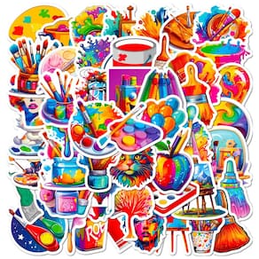 Material: papel e vinil Peso: 30-60 g Tamanho: 3-6 cm Quantidade: 50 unidades O tema de arte criativa inclui 50 adesivos com ferramentas de pintura, paletas, pincéis, cavaletes e padrões artísticos coloridos, perfeitos para adicionar um toque artístico vibrante aos seus pertences. Qualidade de vinil durável Feitos de vinil impermeável de alta qualidade, esses decalques são resistentes ao desbotamento, à prova de arranhões e de longa duração, mantendo as cores vivas vivas ao longo do tempo. Fácil de aplicar e remover Cada adesivo de vinil é pré-cortado, simples de descascar e colar em superfícies lisas e removível sem deixar resíduos pegajosos, reutilizável para vários usos de bricolage. Decoração versátil. Ótima para laptops, diários, skates, garrafas de água, álbuns de recortes, guitarras, capas de telefone e malas, permitindo personalização criativa ilimitada. Para crianças e adultosEsses adesivos de vinil são adequados para crianças, adolescentes e adultos que gostam de pintura, artesanato e decoração artística para projetos escolares ou domésticos.