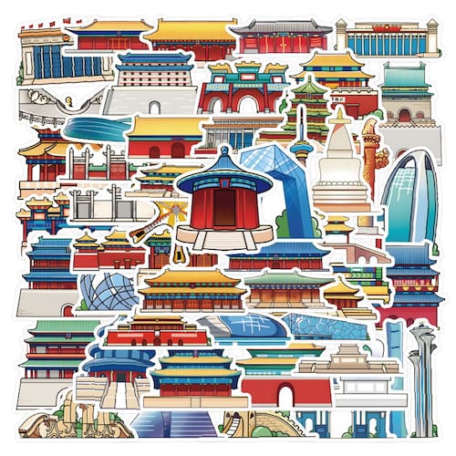 Material: papel e vinil Peso: 30-60 g Tamanho: 3-6 cm Quantidade: 50 unidades Tema histórico de Pequim — apresenta arquitetura chinesa icônica, incluindo a Grande Muralha, a Cidade Proibida, o Templo do Céu e edifícios urbanos modernos para um toque cultural. Vinil impermeável durável — Feitos de vinil de alta qualidade, esses adesivos são à prova d'água, resistentes ao sol e de longa duração para decoração interna e externa. Adesão sem resíduos — O adesivo forte mantém os decalques no lugar em laptops, garrafas e cadernos, mas se desprende facilmente sem deixar resíduos pegajosos. Amplo uso decorativo — perfeito para diários, álbuns de recortes, agendas, malas, skates, guitarras, capas de telefone e garrafas de água com uma estética cultural. Ideal para adolescentes e adultos — Ótimo para viajantes, estudantes e amantes de bricolage que gostam de arte arquitetônica chinesa exclusiva e temas marcantes da cidade.