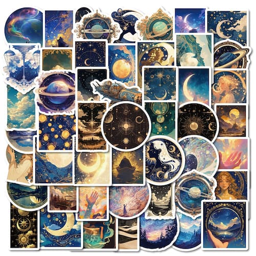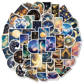 Material: papel e vinil Peso: 30-60 g Tamanho: 3-6 cm Quantidade: 50 unidades O tema Black Galaxy inclui 50 adesivos de vinil à prova d'água com elegantes ilustrações cósmicas, luas místicas, estrelas brilhantes, planetas, constelações e arte celestial onírica. Vinil impermeável premium Feitos com material de vinil de alta qualidade com acabamento fosco suave, esses adesivos são duráveis, à prova d'água e resistentes a arranhões, desbotamento e rasgos. Livre de resíduos e reutilizável Fácil de colar em superfícies planas e lisas e descascar de forma limpa sem deixar resíduos pegajosos ou causar danos aos itens. Decoração DIY perfeita Personalize seu laptop, diário, álbum de recortes, guitarra, skate, garrafa de água, tablet, capa de celular ou geladeira com esses estéticos decalques de vinil Black Galaxy. Ideal para adolescentes e adultosProjetado para amantes da arte celestial, entusiastas da fantasia cósmica e qualquer pessoa que goste de expressar criatividade por meio de adesivos elegantes e sonhadores com temas espaciais.