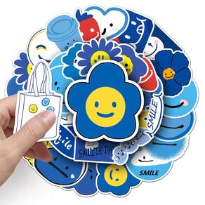 Material: papel e vinil Peso: 30-60 g Tamanho: 3-6 cm Quantidade: 50 peças de desenhos animados alegres — 50 peças de adesivos de rosto sorridente com tema azul com lindas flores, corações e rabiscos divertidos para alegrar seus itens. Impermeável e durável — Decalques de vinil de alta qualidade, à prova d'água e resistentes a rasgos, garantindo cores duradouras sem desbotar. Decoração criativa de bricolage — perfeita para personalizar laptops, garrafas de água, diários, álbuns de recortes, skates, malas e capas de celular. Diversão para todas as idades — Ótimo para crianças, adolescentes e adultos que amam o estilo kawaii e projetos criativos de decoração. Easy Peel & Stick — Adesivo forte para superfícies lisas, removível sem deixar resíduos pegajosos.