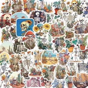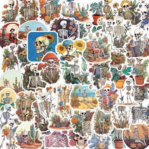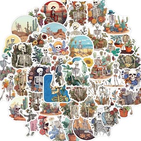 Material: papel e vinil Peso: 30-60 g Tamanho: 3-6 cm Quantidade: 50 unidades Tema de esqueleto e planta — Contém 50 adesivos exclusivos que combinam arte de esqueleto com plantas, flores, cogumelos e cenas do deserto para um estilo botânico gótico criativo. Vinil impermeável durável — Feito de material de vinil premium com revestimento à prova d'água e resistente a UV, garantindo cores vivas de longa duração sem desbotar ou descascar. Uso em várias superfícies — Perfeito para decorar laptops, capas de telefone, iPads, skates, álbuns de recortes, cadernos, malas, capacetes, garrafas de água e muito mais. Estética gótica artística — combina esqueletos com elementos inspirados na natureza, tornando-os ideais para Halloween, diários, álbuns de recortes ou decorações de bricolage. Fácil de aplicar e remover — adesivo forte para uma colagem segura, removível sem deixar resíduos pegajosos, seguro e conveniente para adolescentes e adultos. Tema de esqueleto e planta — contém 50 adesivos exclusivos que combinam arte de esqueleto com plantas, flores, cogumelos e cenas do deserto para criar um estilo botânico gótico criativo. Vinil impermeável durável — Feito de material de vinil premium com revestimento à prova d'água e resistente a UV, garantindo cores vivas de longa duração sem desbotar ou descascar. Uso em várias superfícies — Perfeito para decorar laptops, capas de telefone, iPads, skates, álbuns de recortes, cadernos, malas, capacetes, garrafas de água e muito mais. Estética gótica artística — combina esqueletos com elementos inspirados na natureza, tornando-os ideais para Halloween, diários, álbuns de recortes ou decorações de bricolage.
