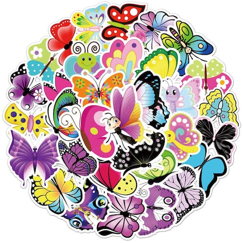 Charming Cartoon Butterflies — Inclui 50 decalques de borboletas de cores vivas em designs caprichosos e fofos que atraem crianças e criativos. Impermeável e resistente a rasgos — Feito de material de vinil durável que é à prova d'água, resistente ao desgaste e ideal para uso interno ou externo de longo prazo. Aplicação sem resíduos — Descasque e cole em superfícies lisas, como laptops, notebooks, garrafas de água e malas; fácil de remover sem deixar marcas adesivas. Ótimo para decoração de bricolage — adicione um tema alegre e colorido de insetos a agendas, capas de celular, superfícies de guitarra ou material de sala de aula com este vibrante conjunto de decalques. Perfeito para todas as idades — Adequado para crianças, adolescentes e amantes de borboletas que desejam personalizar seus itens com obras de arte divertidas e inspiradoras.