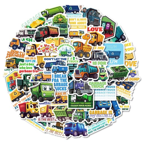 Material: papel e vinil Peso: 30-60 g Tamanho: 3-6 cm Quantidade: 50 unidades Tema de caminhão de lixo de desenho animado — Inclui 50 peças de adesivos coloridos de caminhões de lixo e veículos de construção com expressões divertidas de desenhos animados, perfeitos para crianças e amantes de veículos. Vinil impermeável durável — Feito de vinil premium, impermeável, resistente ao sol e à prova de rasgos; os adesivos permanecem vibrantes e não deixam resíduos pegajosos após a remoção. Uso criativo de bricolage — Ideal para decorar laptops, diários, skates, garrafas de água, malas, capas de telefone, álbuns de recortes, carros e projetos de artesanato DIY. Para crianças e colecionadores — Ótimo para projetos de arte infantis, recompensas em sala de aula e para fãs que gostam de colecionar designs exclusivos com temas de veículos. 🧩 Easy Peel & Stick — Os adesivos aderem firmemente em superfícies lisas, removíveis e reposicionáveis sem danos, seguros para decorações internas e externas.