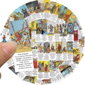 Material: papel e vinil Peso: 30-60 g Tamanho: 3-6 cm Quantidade: 78 unidades78 peças de desenhos de tarô para gatos Este conjunto inclui 78 adesivos exclusivos com gatos adoráveis em estilo de carta de tarô, combinando simbolismo místico e charme kawaii, perfeito para amantes de gatos e entusiastas do tarô. Material de vinil premium. Feito de vinil impermeável e resistente ao sol para cores brilhantes de longa duração, resistência a rasgos e durabilidade, adequado para decoração interna e externa. FÁCIL DE DESCASCAR E LIMPAR. Cada decalque é pré-cortado para uma aplicação rápida, adere fortemente a superfícies lisas e é removido facilmente sem deixar resíduos pegajosos — perfeito para projetos de bricolage reutilizáveis. USO MULTIUSO Ideal para decorar laptops, garrafas de água, capas de telefone, diários, malas, skates, álbuns de recortes e muito mais — diversão para crianças, adolescentes e adultos. Estética fofa e mística. Esses adesivos de vinil de tarô para gatos trazem uma atmosfera mágica e extravagante aos seus acessórios, tornando-os uma ótima opção para artesanato criativo e expressão pessoal.