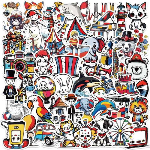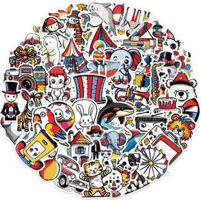 Material: papel e vinil Peso: 30-60 g Tamanho: 3-6 cm Quantidade: 50 unidades da coleção Circus Theme — Um pacote criativo de 50 adesivos com tendas de circo, palhaços, animais, instrumentos e designs inspirados no carnaval em estilo divertido de desenho animado. Material impermeável durável — Feitos de vinil de PVC premium, esses decalques são à prova d'água, resistentes ao sol e à prova de rasgos, garantindo cores vibrantes e uso duradouro. Aplicação DIY versátil — perfeita para decorar laptops, guitarras, telefones, garrafas de água, skates, malas, cadernos, diários e álbuns de recortes. Adequado para todas as idades — adesivos de circo divertidos criados para crianças, adolescentes e adultos, ótimos para artesanato, projetos escolares e personalização de itens diários. Easy Peel & No Residue — Aplicação peel-and-stick, removível sem resíduos pegajosos, reutilizável para várias ideias de decoração e projetos criativos.