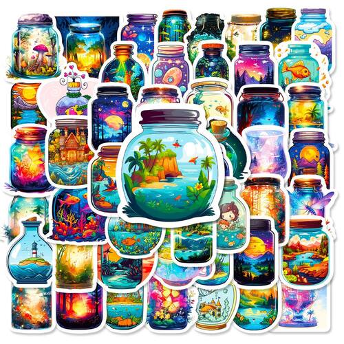 Pacote de adesivos Colorful World In Bottles Anime Waterproof x50