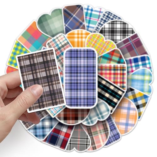 Material: papel e vinil Peso: 30-60 g Tamanho: 3-6 cm Quantidade: 53 peças O conjunto de adesivos xadrez inclui 50 designs xadrez variados em retângulos, círculos e corações com padrões vibrantes de tartan, guingão e xadrez para uma decoração versátil. Estilo estético exclusivo Combinações de cores brilhantes e de inspiração retrô adicionam uma aparência moderna e aconchegante aos seus itens diários, perfeitas para personalizar artigos de papelaria e gadgets. Qualidade de vinil impermeável Feitos de material de vinil durável, esses adesivos são à prova d'água, resistentes ao desbotamento e fáceis de remover sem deixar resíduos pegajosos. Ampla aplicação. Ótimo para laptops, diários, álbuns de recortes, capas de telefone, skates, malas, garrafas de água, guitarras ou projetos de artesanato DIY. Para adolescentes e adultosIdeal para estudantes, uso no escritório ou decoração criativa — esses adesivos xadrez trazem charme estiloso aos seus pertences de uma forma fácil e divertida.