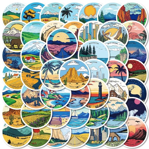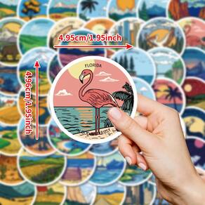 Material: papel e vinil Peso: 30-60 g Tamanho: 3-6 cm Quantidade: 50 peças de cenário de viagem O tema inclui 50 peças de adesivos redondos de desenhos animados com montanhas, praias, cidades, florestas e monumentos famosos em estilo colorido ao ar livre. Vinil impermeável durável Feitos de vinil premium, esses decalques são à prova d'água, resistentes ao sol e removíveis sem resíduos pegajosos, ideais para uso duradouro. Decoração versátil Perfeita para laptops, garrafas de água, skates, malas, diários, álbuns de recortes e projetos de viagem DIY. As paisagens externas criativas e divertidas trazem uma sensação de aventura e exploração, adequadas para decorar diários de viagem, acessórios diários e equipamentos. Para crianças, adolescentes e adultos. Ótimo para viajantes, estudantes e amantes do ar livre que gostam de designs exclusivos de cenários de desenhos animados para decoração DIY. O tema de cenário de viagem inclui 50 adesivos redondos de desenhos animados com montanhas, praias, cidades, florestas e monumentos famosos em estilo colorido ao ar livre. Vinil impermeável durável Feitos de vinil premium, esses decalques são à prova d'água, resistentes ao sol e removíveis sem resíduos pegajosos, ideais para uso duradouro. Decoração versátil Perfeita para laptops, garrafas de água, skates, malas, diários, álbuns de recortes e projetos de viagem DIY. As paisagens externas criativas e divertidas trazem uma sensação de aventura e exploração, adequadas para decorar diários de viagem, acessórios diários e equipamentos.