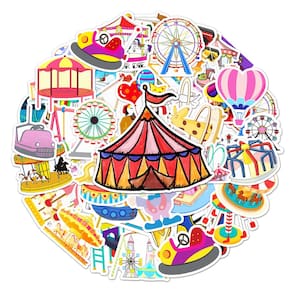Material: papel e vinil Peso: 30-60 g Tamanho: 3-6 cm Quantidade: 50 unidades Tema de parque de diversões — Um pacote divertido de 50 adesivos com rodas gigantes, carrosséis, carrinhos de choque, balanços, palhaços e passeios de carnaval em estilo cartoon colorido. Qualidade impermeável durável — Feitos de vinil de PVC premium, esses decalques são à prova d'água, resistentes ao sol e à prova de rasgos, garantindo designs vibrantes e duradouros. Aplicação em várias superfícies — perfeita para decorar laptops, garrafas de água, skates, malas, capas de telefone, cadernos, diários e álbuns de recortes. Para todas as idades — Adesivos fofos de parques de diversões adequados para crianças, adolescentes e adultos, ideais para projetos de bricolage, artesanato escolar e decoração personalizada. Fácil de descascar e não deixar resíduos — Aplicação peel-and-stick com forte adesão, removível sem resíduos pegajosos, reutilizável para diferentes usos criativos.