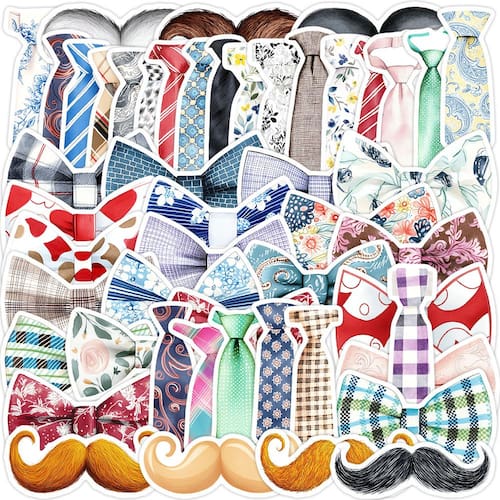 Material: papel e vinil Peso: 30-60 g Tamanho: 3-6 cm Quantidade: 50 unidades Tema do Dia dos Pais — 50 peças de adesivos estilosos com gravatas, gravatas-borboleta, bigodes e padrões retrô, perfeitos para artesanato e decoração festiva. Vinil de alta qualidade — Feitos de vinil durável à prova d'água, esses decalques são resistentes ao desbotamento, arranhões e rasgos, adequados para uso interno e externo. Fácil de aplicar e remover — O adesivo forte adere firmemente às superfícies, mas descasca de forma limpa sem deixar resíduos pegajosos, reutilizável em superfícies lisas. Uso multiuso — Ótimo para laptops, garrafas de água, álbuns de recortes, diários, skates, malas, telefones, carros e guitarras. Decoração criativa de bricolage — ideal para projetos de Dia dos Pais, decorações de festas ou simplesmente para adicionar um toque divertido e elegante aos itens do dia a dia.