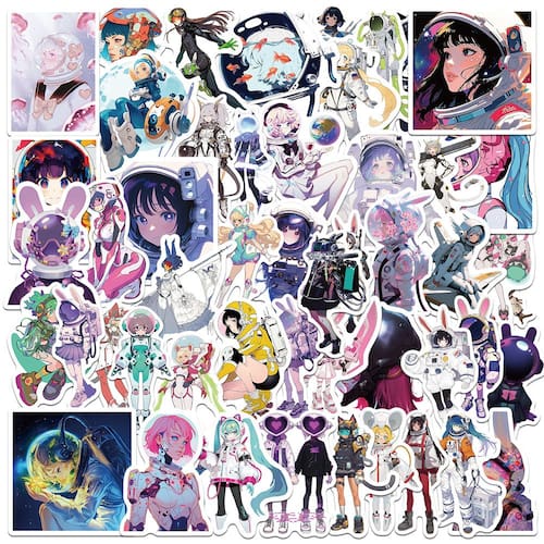 Material: papel e vinil Peso: 30-60 g Tamanho: 3-6 cm Quantidade: 50 unidades do adorável tema Space Girl — Inclui 50 adesivos kawaii exclusivos com garotas astronautas em estilo anime, coelhinhas cósmicas, cenários estrelados e estética espacial sonhadora. Acabamento vibrante e brilhante — adesivos de vinil atraentes com impressão colorida e de alta definição trazem um charme mágico de ficção científica aos seus acessórios diários. Impermeável e durável — Feito de vinil de PVC premium à prova d'água, resistente ao desbotamento, arranhões e descamação — perfeito para uso a longo prazo. Fácil de descascar e aplicar — Esses adesivos grudam firmemente na maioria das superfícies lisas e são fáceis de remover sem deixar resíduos. 🧒 Perfeitos para adolescentes e amantes de anime — Um conjunto de decoração criativo ideal para meninas, estudantes e fãs de anime, mangá e visuais com temas espaciais.
