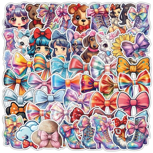 Material: papel e vinil Peso: 30-60 g Tamanho: 3-6 cm Quantidade: 50 unidades A coleção inclui 50 adesivos com laços coloridos, meninas kawaii, animais de estimação, flores e elementos criativos de desenhos animados para uma decoração versátil. Adorável estilo de desenho animado Projetado com cores brilhantes, botas fantásticas e personagens divertidos, adicionando uma atmosfera divertida e artística aos seus acessórios. Material de vinil durável Feito de vinil impermeável e resistente ao desbotamento, garantindo um uso vívido e duradouro em ambientes internos ou externos. Fácil de aplicar e remover. Os adesivos peel-and-stick aderem suavemente à maioria das superfícies e podem ser removidos de forma limpa, sem deixar resíduos, ideais para reposicionamento. Ampla aplicação. Perfeito para crianças, adolescentes e adultos decorarem laptops, capas de telefone, garrafas de água, diários, álbuns de recortes e malas.