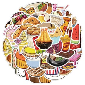 Material: papel e vinil Peso: 30-60 g Tamanho: 3-6 cm Quantidade: 50 unidades Adorable Food Designs 50 peças de adesivos com pizza, hambúrgueres, donuts, biscoitos, cupcakes, batatas fritas, sorvetes e bebidas em um colorido estilo de desenho animado kawaii. Material de vinil durável Feito de vinil de PVC impermeável e à prova de sol, garantindo cores duradouras e resistência a arranhões para uso diário. Amplo uso de decoração Ideal para laptops, skates, garrafas de água, capas de telefone, álbuns de recortes, diários, malas, geladeiras e projetos de bricolage. Fácil de colar e remover Adesivo forte que se aplica suavemente na maioria das superfícies e é removido de forma limpa sem deixar resíduos pegajosos. Escolha criativa de bricolage Perfeita para crianças, adolescentes e adultos que adoram acessórios com temas gastronômicos e desejam personalizar seus pertences com divertidos decalques de desenhos animados.