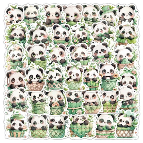 Material: papel e vinil Peso: 30-60 g Tamanho: 3-6 cm Quantidade: 54 unidades. Designs exclusivos de pandas — Apresenta adoráveis pandas sentados em cestos com flores e plantas, adicionando uma estética suave e kawaii à sua coleção. Material de vinil durável — Feito de vinil impermeável e resistente a rasgos, garantindo cores duradouras e proteção contra arranhões e luz solar. Fácil de usar — Aplicação de descascar e colar, um adesivo forte mantém os adesivos no lugar, permitindo a fácil remoção sem deixar resíduos. Decoração versátil — perfeita para laptops, capas de celular, álbuns de recortes, skates, garrafas de água, malas e artesanato infantil. Para crianças e adultos — Ótimo para projetos criativos infantis, personalização de adolescentes ou adultos que amam adesivos fofos com temas de animais e da natureza.