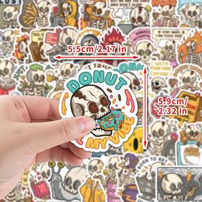 Material: papel e vinil Peso: 30-60 g Tamanho: 3-6 cm Quantidade: 50 unidades O design exclusivo de esqueleto inclui 50 adesivos criativos com temas de esqueleto com obras de arte engraçadas em estilo cartoon, perfeitos para adicionar personagens peculiares aos seus pertences. Material impermeável durável Feito de vinil de PVC de alta qualidade, impermeável, resistente a rasgos e à prova de sol; os adesivos permanecem vibrantes em ambientes internos e externos. Uso decorativo versátil Ideal para decorar laptops, garrafas de água, skates, capas de telefone, diários, álbuns de recortes, malas, capacetes e muito mais. Fácil de aplicar e remover O adesivo forte garante que os adesivos permaneçam firmes no lugar, enquanto a remoção sem resíduos simplifica o reposicionamento. Para adolescentes e adultosOs temas modernos de esqueletos e rabiscos atraem adolescentes, estudantes e adultos que gostam de decoração criativa, estética ou divertida de adesivos.