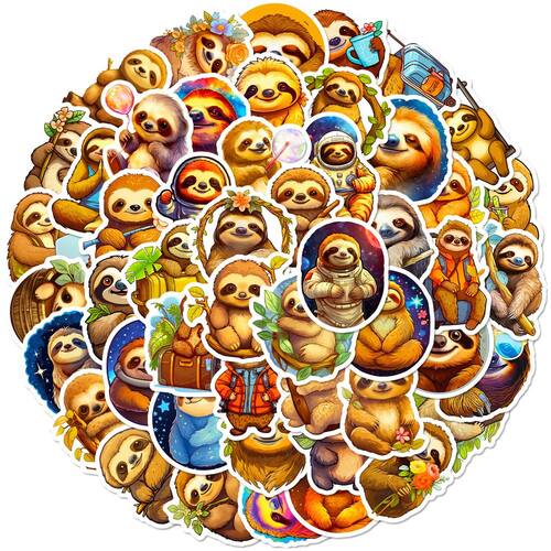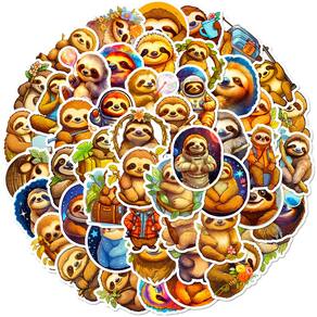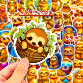Pacote de adesivos Cute Sloth, vinil impermeável, 50 unidades de 5-7 cm