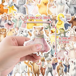 Material: papel e vinil Peso: 30-60 g Tamanho: 3-6 cm Quantidade: 50 unidades Adorável tema de dança — Contém 50 adesivos de animais de desenho animado com gatos, cachorros, coelhos, ursos, patos, sapos e muito mais em poses divertidas de dança e performance para uma atmosfera alegre. Vinil impermeável durável — Feito de material de vinil de alta qualidade que é à prova d'água, resistente a arranhões e à prova de desbotamento, garantindo um uso brilhante e duradouro em ambientes internos ou externos. Decoração versátil — perfeita para laptops, diários, álbuns de recortes, garrafas de água, capas de telefone, skates, malas e outros itens para adicionar charme divertido. Fácil de aplicar e remover — O adesivo forte adere com firmeza, mas descasca de forma limpa, sem deixar resíduos pegajosos ou danificar as superfícies. Diversão para todas as idades — Os lindos decalques de animais dançantes são adequados para crianças, adolescentes e adultos, ideais para artesanato, recompensas em sala de aula ou decoração de objetos pessoais. Adorável tema de dança — contém 50 adesivos de animais de desenho animado com gatos, cachorros, coelhos, ursos, patos, sapos e muito mais em poses divertidas de dança e performance para uma atmosfera alegre. Vinil impermeável durável — Feito de material de vinil de alta qualidade que é à prova d'água, resistente a arranhões e à prova de desbotamento, garantindo um uso brilhante e duradouro em ambientes internos ou externos. Decoração versátil — perfeita para laptops, diários, álbuns de recortes, garrafas de água, capas de telefone, skates, malas e outros itens para adicionar charme divertido. Fácil de aplicar e remover — O adesivo forte adere com firmeza, mas descasca de forma limpa, sem deixar resíduos pegajosos ou danificar as superfícies.