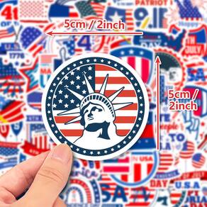 Material: papel e vinil Peso: 30-60 g Tamanho: 3-6 cm Quantidade: 50 unidades de adesivos patrióticos PCS — Apresenta bandeira americana, Estátua da Liberdade, águia careca, fogos de artifício, Tio Sam e outros elementos do Dia da Independência em designs vibrantes. Adesivos de vinil duráveis — impermeáveis, resistentes ao desbotamento e ao desgaste, mantendo cores brilhantes e forte adesão em superfícies internas e externas. Fácil de aplicar — os adesivos removíveis se encaixam com segurança em laptops, garrafas de água, álbuns de recortes, capas de telefone, skates e malas sem deixar resíduos pegajosos. Uso multiuso — Ótimo para decorar diários, copos, capacetes, agendas, suprimentos para festas e artesanato de 4 de julho, adicionando vibrações festivas de vermelho, branco e azul. Adequado para todas as idades — Diversão para crianças, adolescentes e adultos personalizarem pertences, aprimorarem projetos de bricolage ou celebrarem o Dia da Independência de forma criativa.