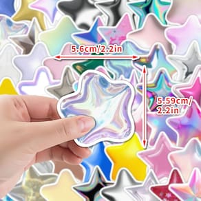 Material: papel e vinil Peso: 30-60 g Tamanho: 3-6 cm Quantidade: 50 unidades com tema 3D Star 50 peças de adesivos holográficos em forma de estrela em cores metálicas e arco-íris, adicionando um toque brilhante e sonhador a itens pessoais e projetos de bricolage. Vinil impermeável durável Feitos de vinil premium, esses decalques são à prova d'água, resistentes a rasgos e à prova de UV, garantindo cores brilhantes e efeitos brilhantes duradouros. Fácil de descascar e colar Simplesmente descasque e cole em qualquer superfície lisa; removível sem deixar resíduos, seguro para decorar telefones, laptops e diários. Aplicação DIY versátil, perfeita para laptops, capas de telefone, álbuns de recortes, malas, cadernos, agendas, garrafas de água e artesanato, aprimorando-os com um charme criativo e estrelado. Para adolescentes e adultos. Ótima opção para estudantes, professores e amantes criativos de bricolage que gostam de personalizar seus artigos de papelaria, acessórios ou dispositivos tecnológicos com decalques holográficos em forma de estrela. 3D Star Theme50 unidades de adesivos holográficos em forma de estrela em cores metálicas e arco-íris, adicionando um toque brilhante e sonhador a itens pessoais e projetos de bricolage. Vinil impermeável durável Feitos de vinil premium, esses decalques são à prova d'água, resistentes a rasgos e à prova de UV, garantindo cores brilhantes e efeitos brilhantes duradouros. Fácil de descascar e colar Simplesmente descasque e cole em qualquer superfície lisa; removível sem deixar resíduos, seguro para decorar telefones, laptops e diários. Aplicação DIY versátil, perfeita para laptops, capas de telefone, álbuns de recortes, malas, cadernos, agendas, garrafas de água e artesanato, aprimorando-os com um charme criativo e estrelado.