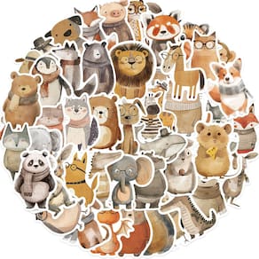 Material: papel e vinil Peso: 30-60 g Tamanho: 3-6 cm Quantidade: 50 unidades 50 designs exclusivos desenhados à mão Inclui 50 adesivos não repetitivos com animais adoráveis como raposa, baleia, golfinho, tartaruga, coruja, pinguim, leão, girafa, zebra e muito mais em um estilo aquarela pintado à mão. Vinil impermeável durável Feitos com vinil premium, esses decalques são à prova d'água, resistentes a arranhões e à prova de sol, garantindo cores brilhantes e durabilidade duradoura. Decoração versátil Perfeita para personalizar laptops, garrafas de água, cadernos, guitarras, skates, malas, capas de telefone, álbuns de recortes e outras superfícies lisas. Remoção fácil de descascar e limpar. Os adesivos descascam facilmente e grudam com firmeza, sem deixar resíduos pegajosos quando removidos, seguros para uso por crianças, adolescentes e adultos. Estilo de arte encantador em aquarela As ilustrações extravagantes de animais em aquarela adicionam um toque curativo e criativo, tornando-as ideais para escrever um diário, fazer artesanato, decorar materiais de estudo e expressão pessoal.